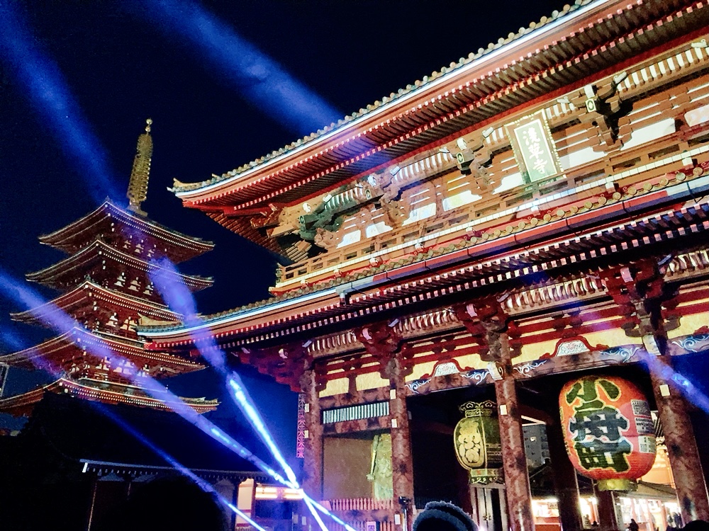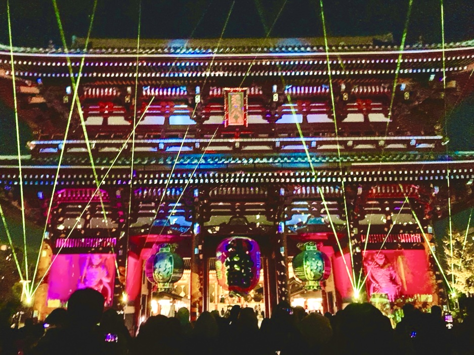あの浅草寺の宝蔵門、五重塔、二天門にプロジェクションマッピングが投影される光のアートイベント♡