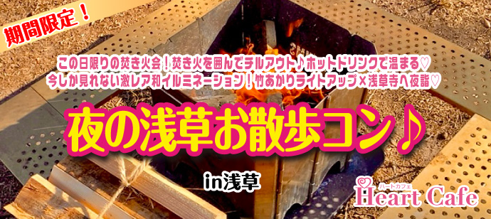 【1/31(土)】<30-49歳>この日限りの焚き火会!焚き火を囲んでチルアウト♪ホットドリンクで温まる♡今しか見れない激レア和イルミネーション!竹あかりライトアップ×浅草寺へ夜詣♡夜の浅草お散歩コン♪【浅草】