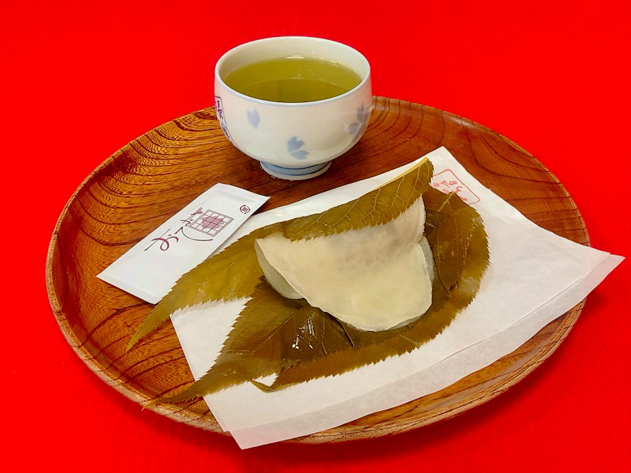 創業者が隅田川土手の桜の葉を塩漬けにして桜もちを考案し、長命寺の門前にて売り始めたのがはじまりだとか。
